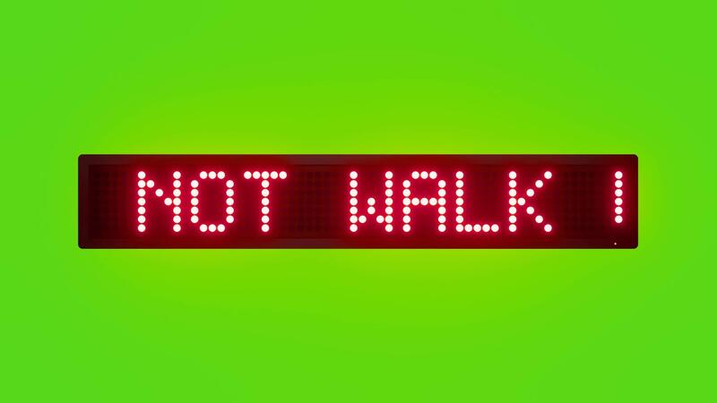 DO NOT WALK UNDER A LIFTED LOAD Scrolling Red Dot Matrix LED Text Animation on Green Screen Seamless Loop Free Video