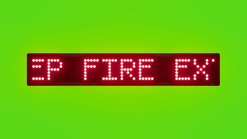 KEEP FIRE EXTINGUISHERS NEAR FLAMMABLE MATERIAL AREAS Scrolling Red Dot Matrix LED Text Animation on Green Screen Seamless Loop Free Video
