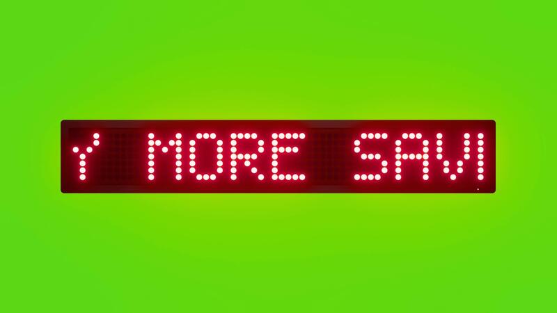 BUY MORE SAVE MORE Scrolling Red Dot Matrix LED Text Animation on Green Screen Seamless Loop Free Video