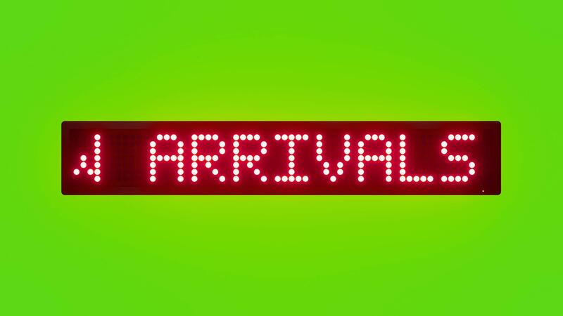 NEW ARRIVALS IN STORE Scrolling Red Dot Matrix LED Text Animation on Green Screen Seamless Loop Free Video