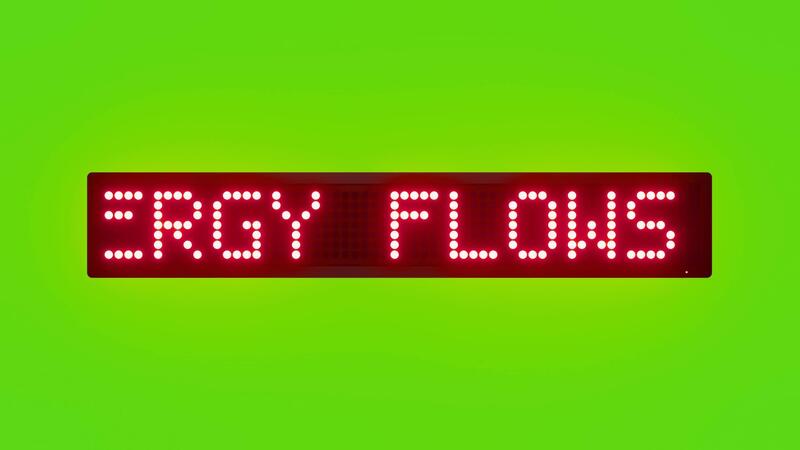 ENERGY FLOWS WHERE FOCUS GOES Scrolling Red Dot Matrix LED Text Animation on Green Screen Seamless Loop Free Video
