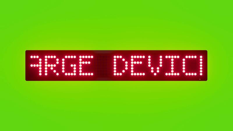 CHARGE DEVICES IN DESIGNATED AREAS ONLY Scrolling Red Dot Matrix LED Text Animation on Green Screen Seamless Loop Free Video