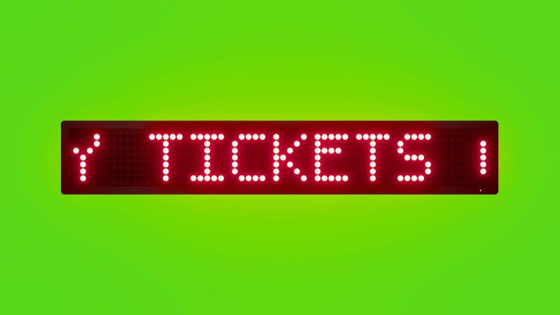 BUY TICKETS ONLINE AND SAVE TIME Scrolling Red Dot Matrix LED Text Animation on Green Screen Seamless Loop Free Video