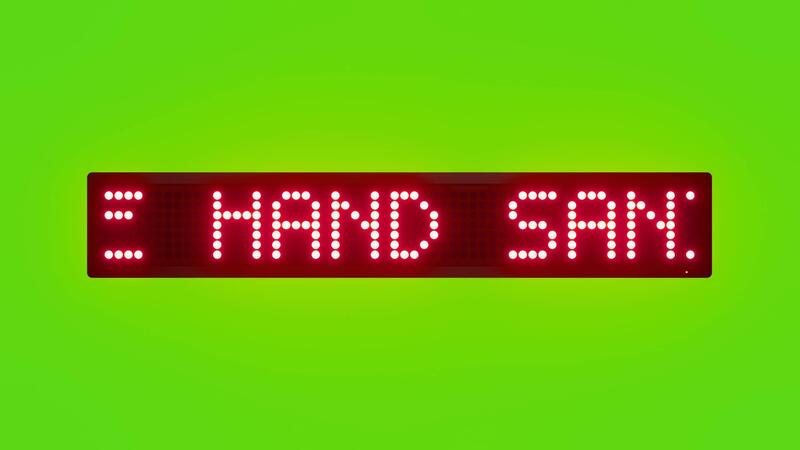 USE HAND SANITIZER REGULARLY Scrolling Red Dot Matrix LED Text Animation on Green Screen Seamless Loop Free Video