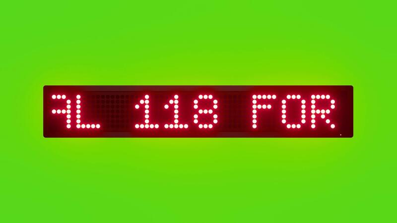 DIAL 118 FOR COAST GUARD EMERGENCY IN JAPAN Scrolling Red Dot Matrix LED Text Animation on Green Screen Seamless Loop Free Video