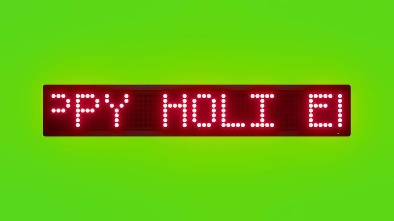 HAPPY HOLI ENJOY THE COLORS OF LIFE Scrolling Red Dot Matrix LED Text Animation on Green Screen Seamless Loop Free Video