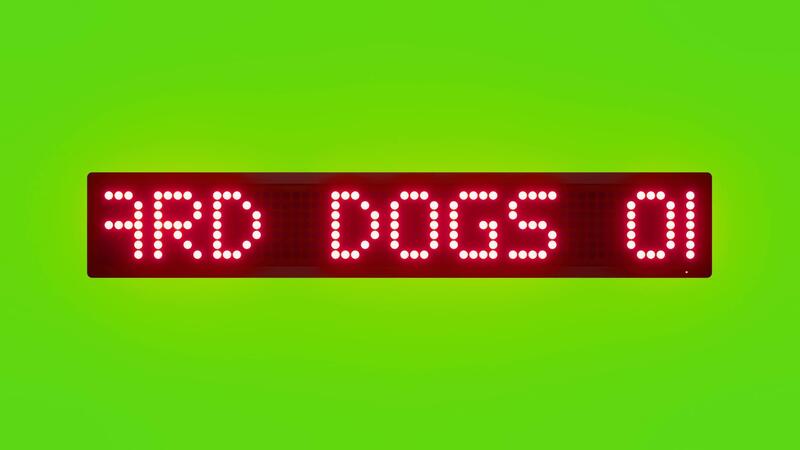 GUARD DOGS ON PATROL BE ALERT Scrolling Red Dot Matrix LED Text Animation on Green Screen Seamless Loop Free Video