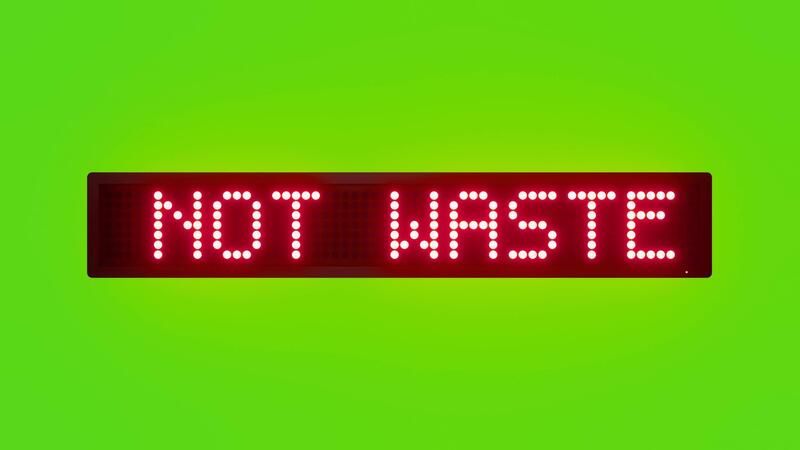 DO NOT WASTE WATER WHILE USING BATHROOM Scrolling Red Dot Matrix LED Text Animation on Green Screen Seamless Loop Free Video