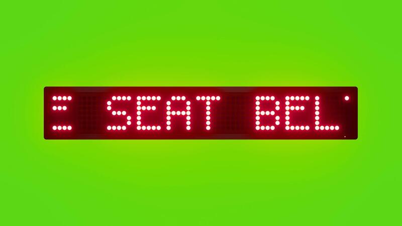 USE SEAT BELTS OR CHILD SEATS IN VEHICLES Scrolling Red Dot Matrix LED Text Animation on Green Screen Seamless Loop Free Video