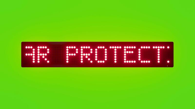 WEAR PROTECTIVE SUIT BEFORE ENTERING THIS ZONE Scrolling Red Dot Matrix LED Text Animation on Green Screen Seamless Loop Free Video