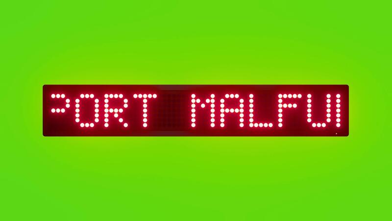 REPORT MALFUNCTION TO BUILDING MANAGEMENT Scrolling Red Dot Matrix LED Text Animation on Green Screen Seamless Loop Free Video