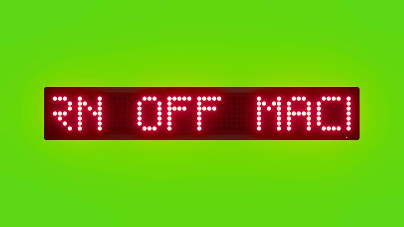 TURN OFF MACHINES AFTER USE Scrolling Red Dot Matrix LED Text Animation on Green Screen Seamless Loop Free Video