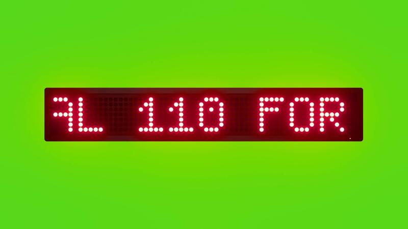 DIAL 110 FOR POLICE EMERGENCY IN CHINA Scrolling Red Dot Matrix LED Text Animation on Green Screen Seamless Loop Free Video