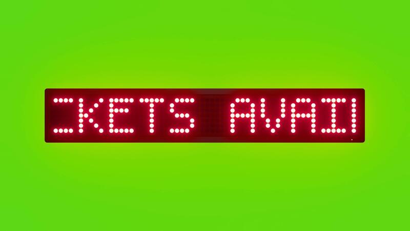 TICKETS AVAILABLE HERE Scrolling Red Dot Matrix LED Text Animation on Green Screen Seamless Loop Free Video