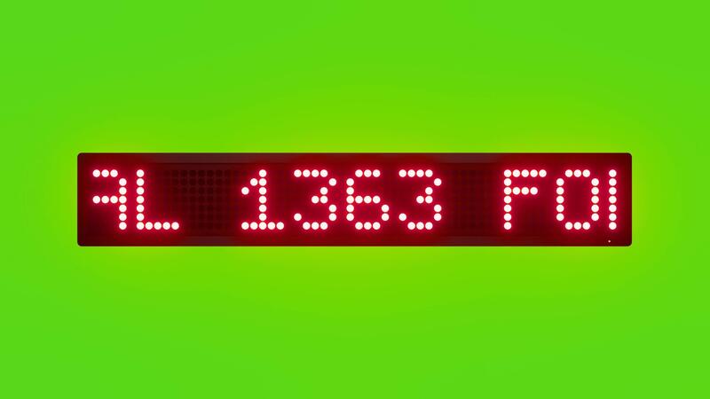 DIAL 1363 FOR TOURIST HELPLINE Scrolling Red Dot Matrix LED Text Animation on Green Screen Seamless Loop Free Video