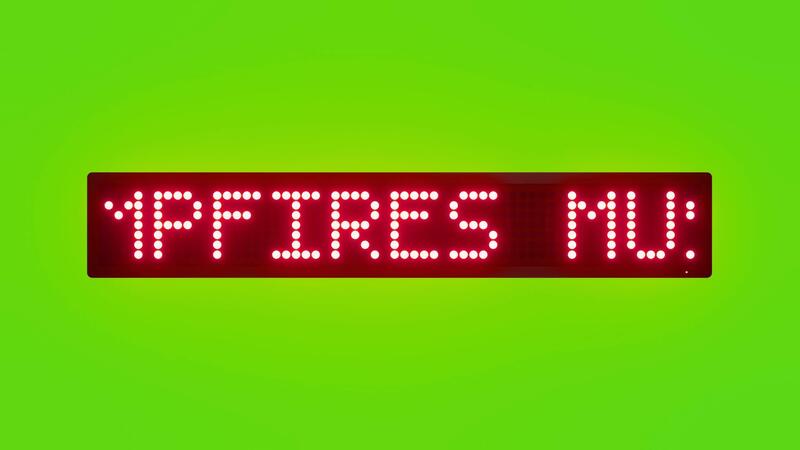 CAMPFIRES MUST BE FULLY EXTINGUISHED BEFORE LEAVING Scrolling Red Dot Matrix LED Text Animation on Green Screen Seamless Loop Free Video