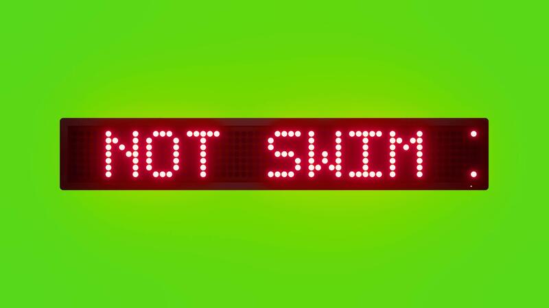 DO NOT SWIM IN UNKNOWN WATER BODIES Scrolling Red Dot Matrix LED Text Animation on Green Screen Seamless Loop Free Video