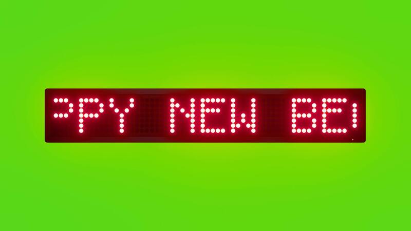 HAPPY NEW BEGINNINGS FOR ALL Scrolling Red Dot Matrix LED Text Animation on Green Screen Seamless Loop Free Video