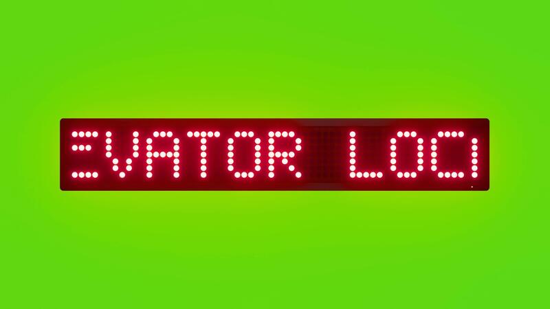 ELEVATOR LOCATED NEAR MAIN ENTRANCE Scrolling Red Dot Matrix LED Text Animation on Green Screen Seamless Loop Free Video