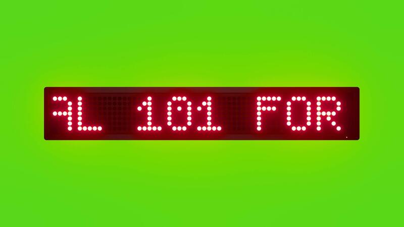 DIAL 101 FOR FIRE EMERGENCY Scrolling Red Dot Matrix LED Text Animation on Green Screen Seamless Loop Free Video