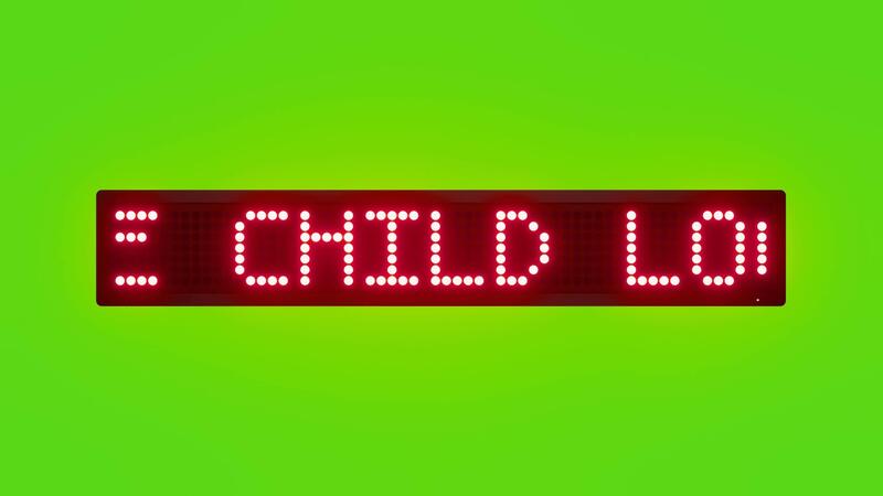 USE CHILD LOCKS ON DOORS AND WINDOWS Scrolling Red Dot Matrix LED Text Animation on Green Screen Seamless Loop Free Video