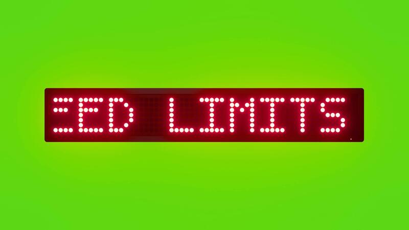 SPEED LIMITS MUST BE STRICTLY FOLLOWED Scrolling Red Dot Matrix LED Text Animation on Green Screen Seamless Loop Free Video