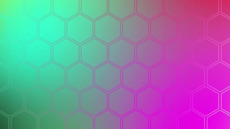 Mesmerizing hexagonal pattern with a smooth gradient transition from green to pink and purple Pro Video