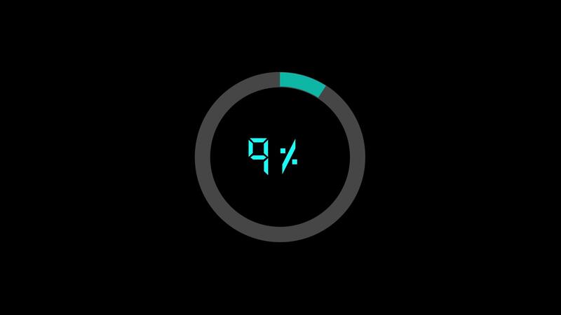 Animated cyan circle with dynamic percentage counter displaying progress and data visualization Pro Video