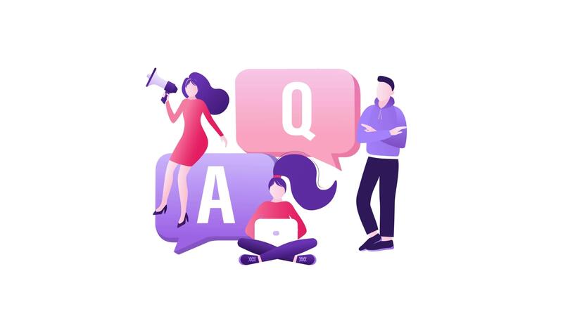 Questions and answers with megaphone and laptop on white and green background Pro Video
