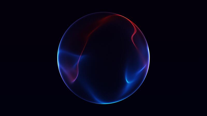 Futuristic abstract red and blue liquid sphere with glowing waves and smooth particle motion on dark background. Seamless 4K loop. Pro Video