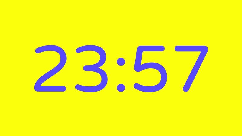 Countdown timer from 24 minute to 23 minute on yellow background with purple number display suitable for technology, urgency, time management concepts, social media posts, blog headers Free Video