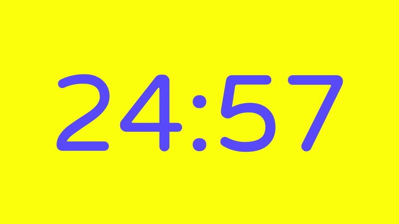 Countdown timer from 25 minute to 24 minute on yellow background with purple number display suitable for technology, urgency, time management concepts, social media posts, blog headers Free Video