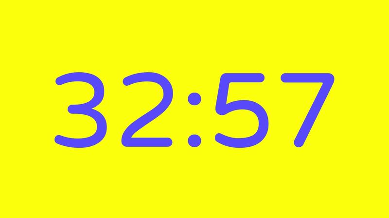 Countdown timer from 33 minute to 32 minute on yellow background with purple number display suitable for technology, urgency, time management concepts, social media posts, blog headers Free Video