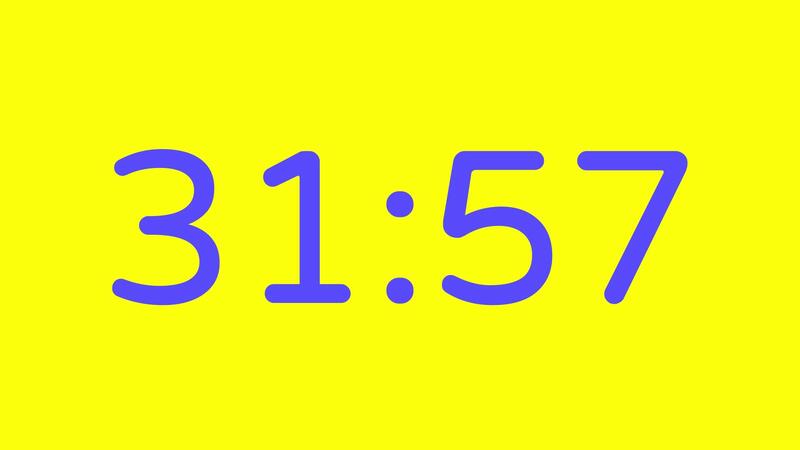 Countdown timer from 32 minute to 31 minute on yellow background with purple number display suitable for technology, urgency, time management concepts, social media posts, blog headers Free Video