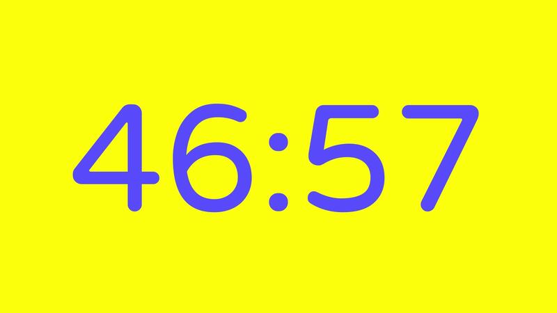 Countdown timer from 47 minute to 46 minute on yellow background with purple number display suitable for technology, urgency, time management concepts, social media posts, blog headers Free Video