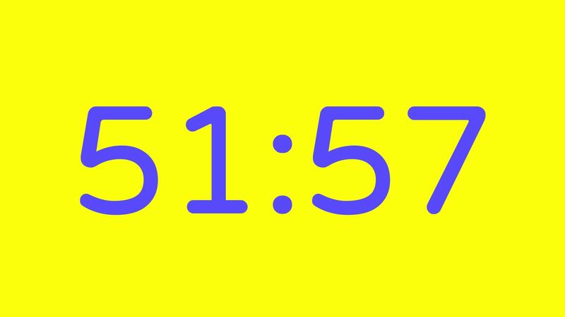 Countdown timer from 52 minute to 51 minute on yellow background with purple number display suitable for technology, urgency, time management concepts, social media posts, blog headers Free Video