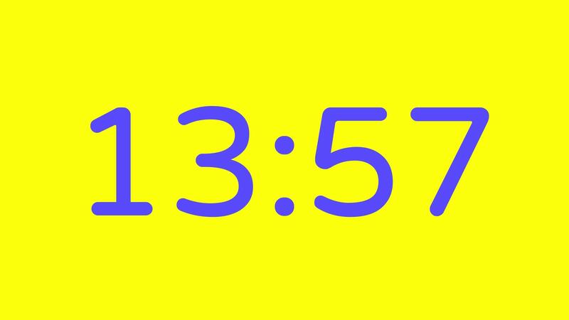 Countdown timer from 14 minute to 13 minute on yellow background with purple number display suitable for technology, urgency, time management concepts, social media posts, blog headers Free Video