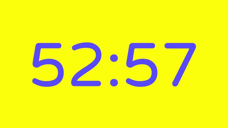 Countdown timer from 53 minute to 52 minute on yellow background with purple number display suitable for technology, urgency, time management concepts, social media posts, blog headers Free Video