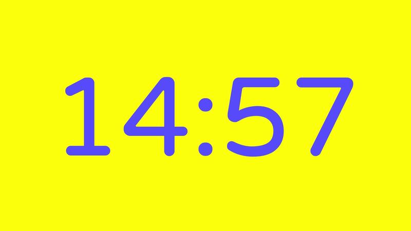 Countdown timer from 15 minute to 14 minute on yellow background with purple number display suitable for technology, urgency, time management concepts, social media posts, blog headers Free Video