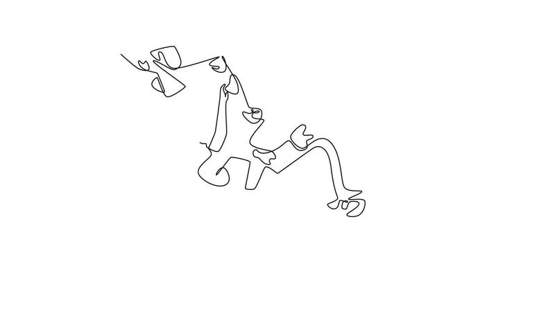 Animated self drawing of continuous line draw woman climbing an overhanging cliff in a challenging, inverted pose, representing concentration to conquer a rock wall. Full length single line animation Pro Video