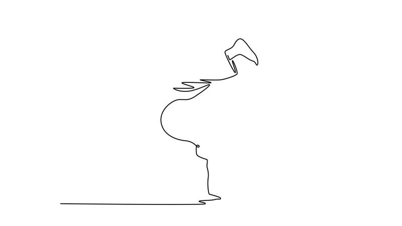 Self drawing animation of single line draw man demonstrating incredible strength and balance while performing challenging, one-handed handstand, move of Capoeira. Continuous line. Full length animated Pro Video