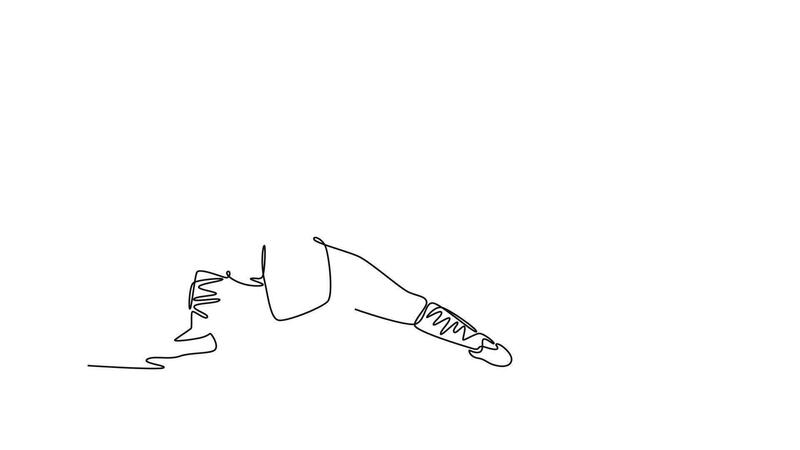 Self drawing animation of single line draw active man in a low, wide stance with clenched fists, powerful Shaolin Kung Fu pose that conveys stability, discipline. Continuous line. Full length animated Pro Video