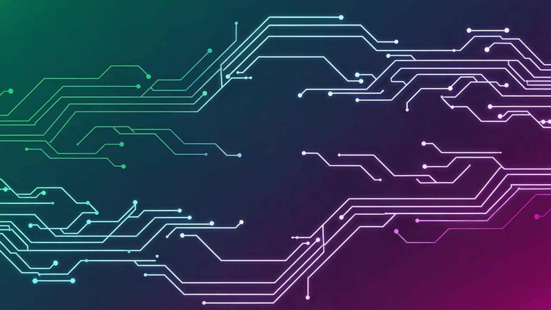Neon Circuit Board Background with Glowing Data Lines on Gradient Tech Backdrop Free Video