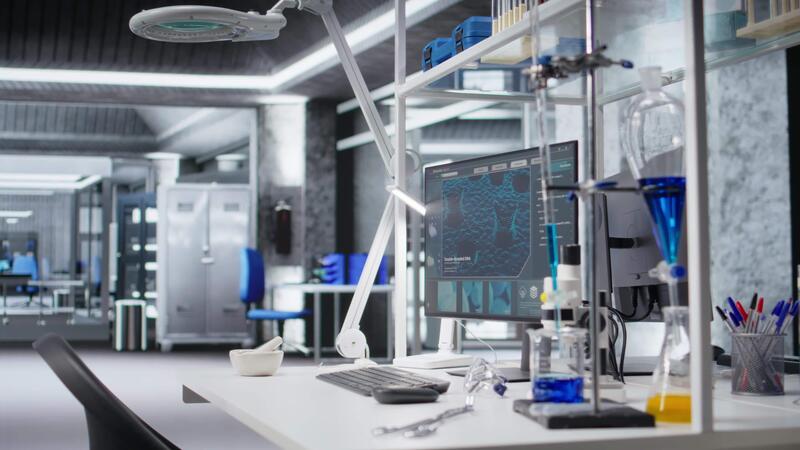 Empty research lab with specimen samples in jars and other research tools, precision and preparation for experiments. Laboratory setup emphasizes healthcare discovery and molecular analysis. Pro Video