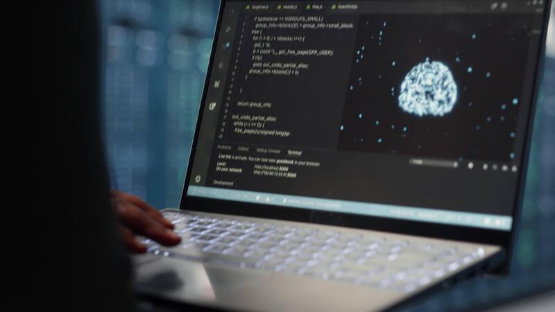 Close up of computer scientist working in data center to optimize network infrastructure. Server farm worker using AI technology to diagnose and resolve hardware malfunctions Pro Video