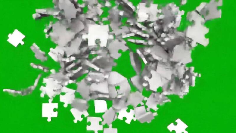 a transition where the screen is shattered into thousands of tiny flying puzzle pieces on a green Pro Video