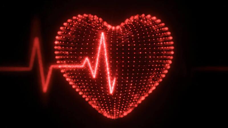 Glowing Heartbeat Animation on Black Background With EKG Reading and Pulsating Light Pattern Pro Video