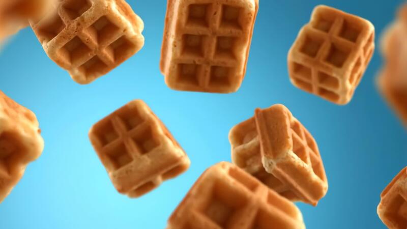 Waffles Are Floating and Rotating Against Blue Sky in a Studio Setting Pro Video