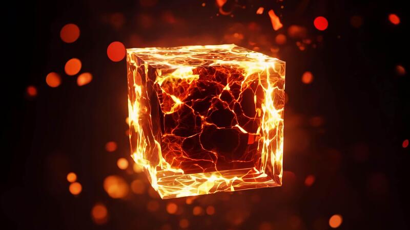 Molten Cube of Lava Floating in Dark Space With Orange Bokeh at Night Pro Video