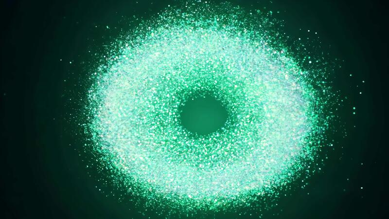 Glowing Emerald Donut Shape Formed by Floating, Sparkling Particles on a Dark Background Pro Video